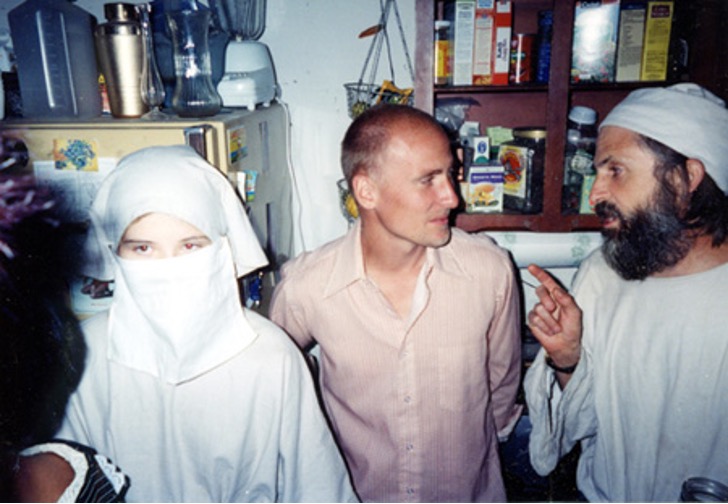 Elizabeth Smart and captor Brian David Mitchell (far right) at a party where she wore a veil to conceal her identity
