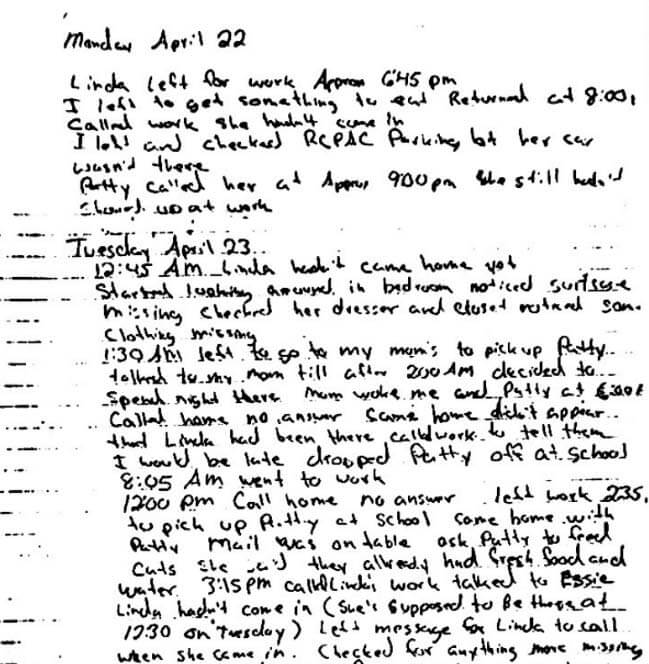 Don says Linda left for work around 6 PM, but there are no other witnesses. She never makes it to work.