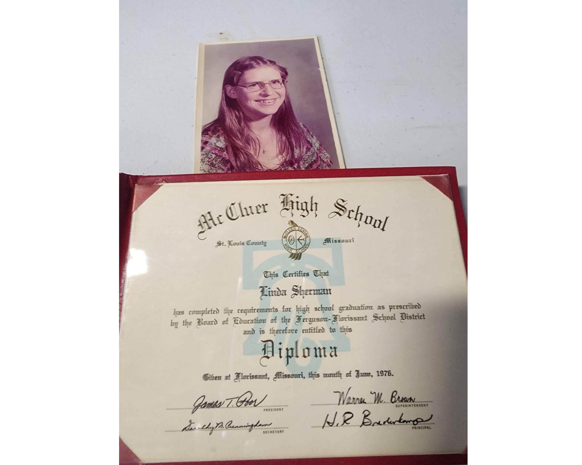 Linda in her junior year at McCluer High School in Missouri, 1975.